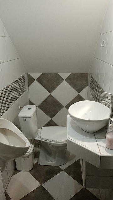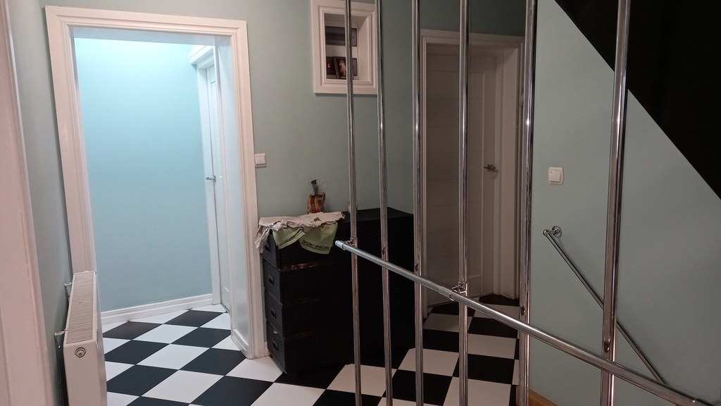 Dom stoi na działce o powierzchni 967m2, ma powierzchnię zabudowy ok. 100 m2, zatem tyle przypada na kondygnację. Całość mieszkalna ma ok. 350 m2. Na tę powierzchnię składa się z aż 18 pokoi, 7 łazienek z WC, 4 kuchnie oraz komunikacja między piętrami.