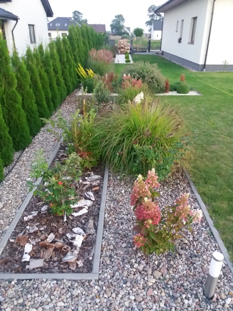 W ogrodzie i na tarasie rozprowadzone jest oświetlenie. Wjazd i wejście do domu wyłożone polbrukiem, dodatkowo w rogu działki wyłożony polbrukiem plac pod wiatę o pow. 19m2. Dodatkowo na ogrodzie wykonane utwardzone miejsce pod grilla.