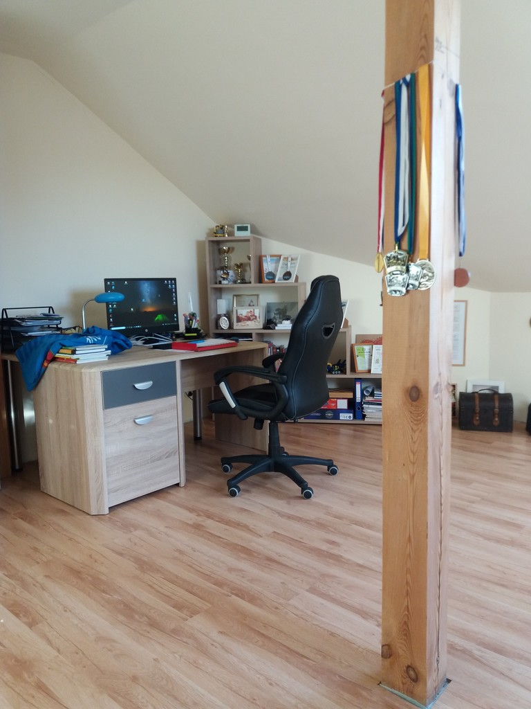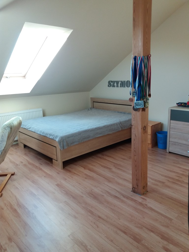 Piętro-hol, trzy pokoje, łazienka. Górna łazienka do wykończenia. Na parterze okna pcv, na piętrze połaciowe.