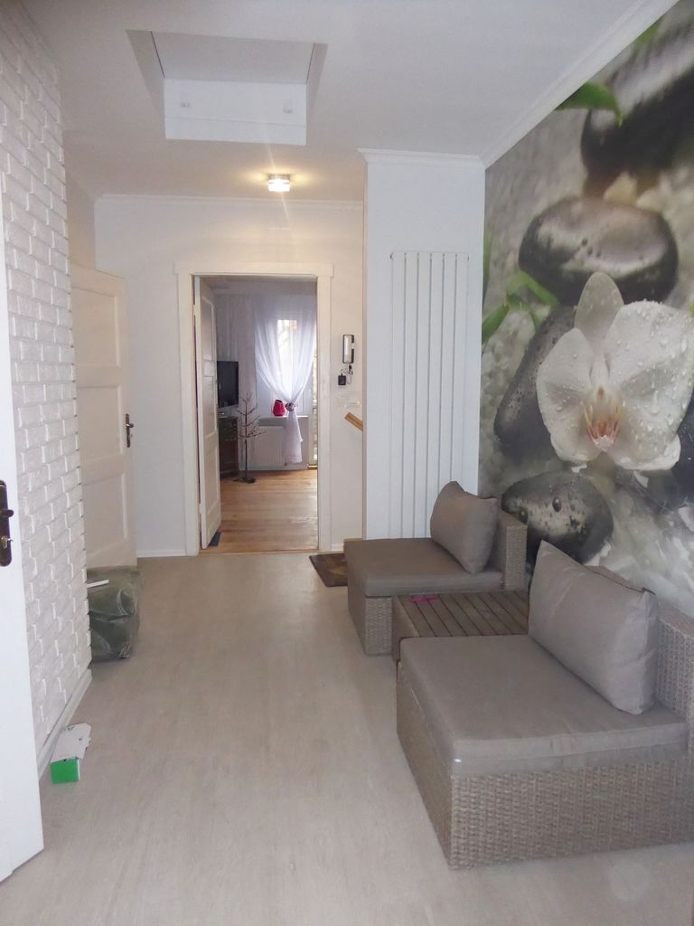 Do wynajęcia góra domu z osobnym wejściem. Na powierzchnię domu składa się; 4 pokoje, 2 łazienki, osobno wc, duży hol, kuchnia, garderoba. Mieszkanie świeżo wyremontowane, położona nowa instalacja wodna, kanalizacyjna i elektryczna. Ściany gładzone i malowane, na podłogach panele i deska. Mieszkanie umeblowane i wyposażone. Przy domu miejsca parkingowe.