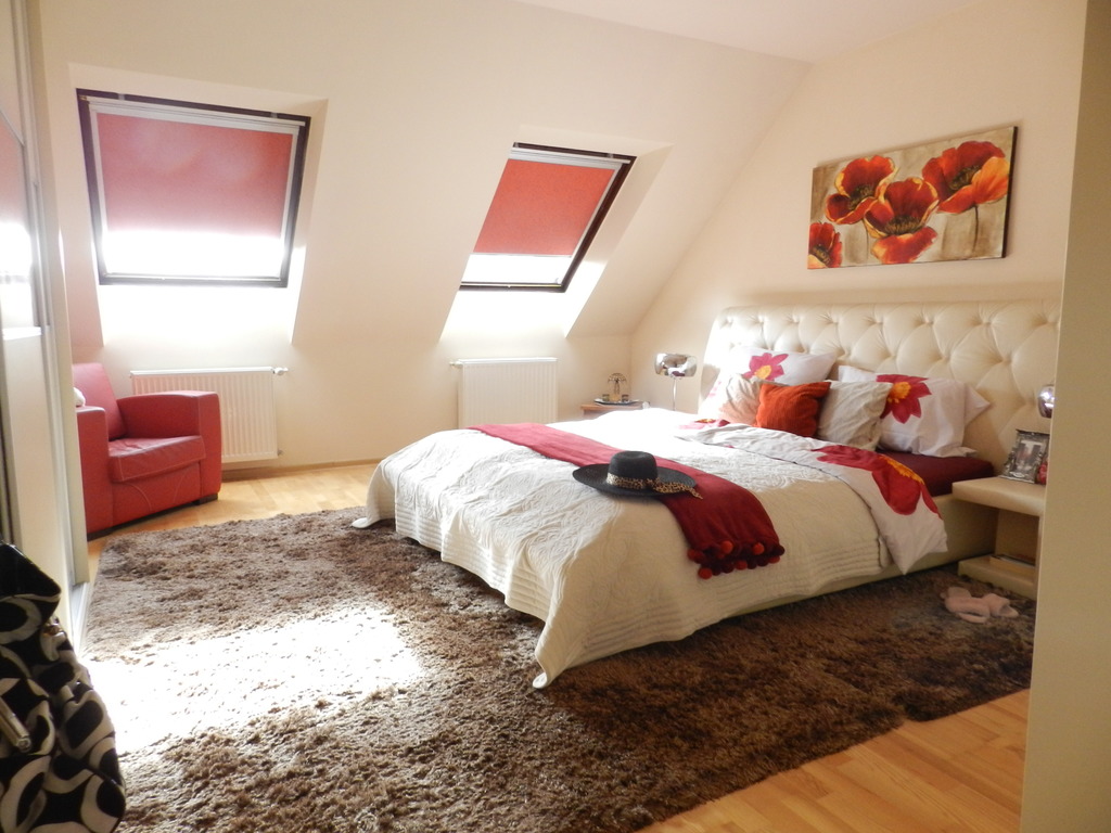 Okna połaciowe drewniane. "Nieuciążliwe" skosy zaczynające się na wysokości ok 1m.