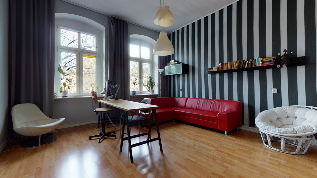 Niezwykle klimatyczne i funkcjonalne mieszkanie o powierzchni 99,24 m2, usytuowane na pierwszym piętrze poniemieckiej kamienicy w centrum Szczecina.