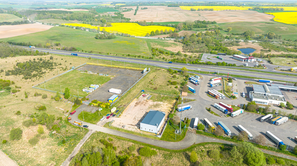 Hala położona jest 2,5 km przed granicą polsko-niemiecką, przy autostaradzie A6 i węźle drogowym - Kołbaskowo. Węzeł ten do 2025 roku zostanie zastapiony nowym wiaduktem na zachód od istniejacego MOP u wraz z drogami dojazdowymi i placami do zawracania. Realizacja tej inwestycji znacznie podniesie atrakcyjność prezentowanej oferty.