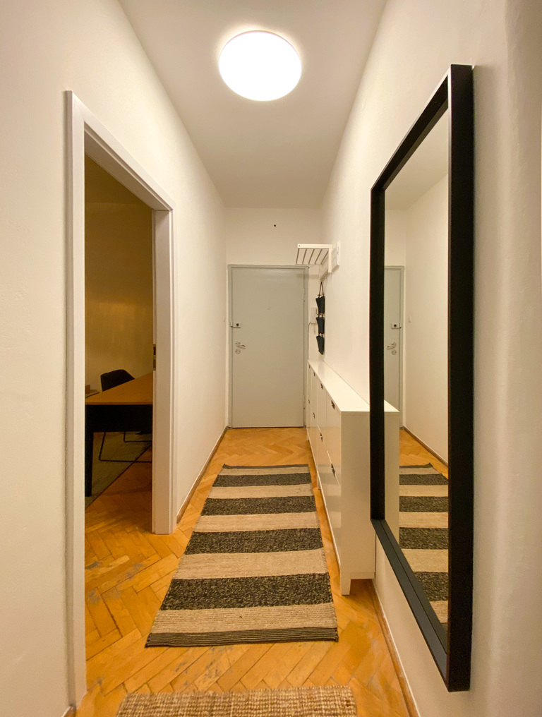 Dwa pokoje, oddzielna kuchnia, łazienka i przedpokój.