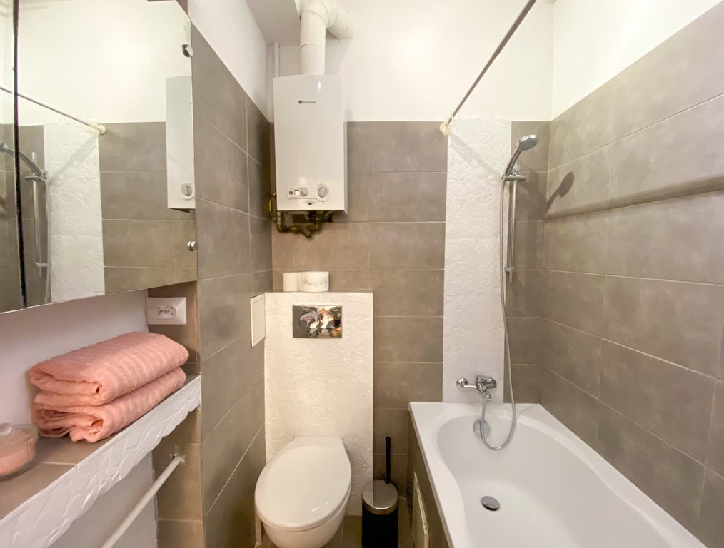 Mieszkanie, po remoncie, wygładzone ściany, w kuchni na podłodze płytki, w pokojach stary parkiet ułożony w jodełkę. Ciepła woda podrzewana junkersem ( w całej kamienicy została już rozprowadzona instalacja do podłączenia do cieplika miejskiego). Ogrzewanie z pieca własnego kamienicy- również planowane przyłaczenie do sieci miejskiej.