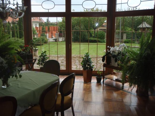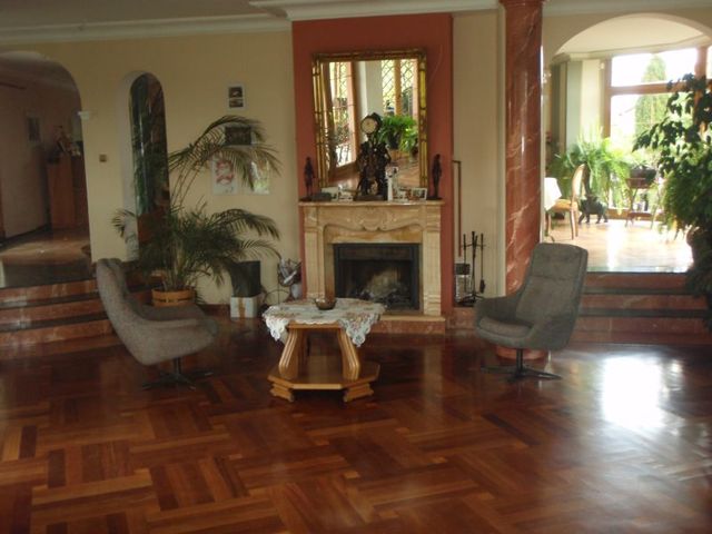 Dom jest niezwykle ekonomiczny w utrzymaniu,mimo dużej powierzchni koszty utrzymania są stosunkowo niewielkie dzięki temu że są zainstalowane cztery solary,oraz piec dwuobiegowy piec gazowy do ogrzewania oraz niezależny piec gazowy na samą ciepłą wodę w okresie letnim.Dom jest zbudowany z najwyższej klasy materiałów,dobrze ocieplony i funkcjonalnie rozplanowany.Dól domu to ok.300m2 na które składa się hall,kuchnia otwarta na jadalnię z dużym panoramicznym oknem i wyjściem na piękny ogród.Z jadalni jest przejście do dużego jasnego salonu w którym jest kominek również z rozprowadzeniem ciepła na wszystkie pokoje.Z salonu jest wyjście na ogród od drugiej strony oraz wejście do ogrodu zimowego. .Dalej zataczamy krąg i dochodzimy do kolejnych dwóch pokoi i salonu rekraacyjnego w którym stoi obecnie stół bilardowy,wszystkie pokoje z oknami na ogród,dół to jeszcze łazienka i pokój gospodarczy.Na górę domu są dwa wejścia -jedno do części sypialnianej w której znajdują się cztery sypialnie z dwoma łazienkami.Z każdej sypialni jest wyjście na balkon.Jedna sypialnia ma samodzielną dużą łazienkę.Drugim wejściem na górę domu wchodzimy do pomieszczenia z prysznicem i planowaną sauną oraz wypoczywalnią.Tam też znajduje się pomieszczenie z piecami i aparaturą solarną.Góra domu ma też wspólny taras.Ogrzewanie dołu domu i łazienek jest podłogowe,na górze domu są zainstalowane kaloryfery i nadmuchowe z kominka.W całym domu zainstalowany jest odkurzacz centralny,oraz na oknach rolety antywłamaniowe.Na ogrodzie jest dużo nasadzeń zielonych,oczko wodne,oraz kort tenisowy w trakcie realizacji.Jeden garaż jest w bryle domu-jednostanowiskowy i drugi wolnostojący z wiatą dwustanowiskowy.Dom ma bardzo ładną bryłę i bardzo funkcjonalne rozmieszczenie poszczególnych pomieszczeń .Polecam i zapraszam na prezentację! Cena do negocjacji.