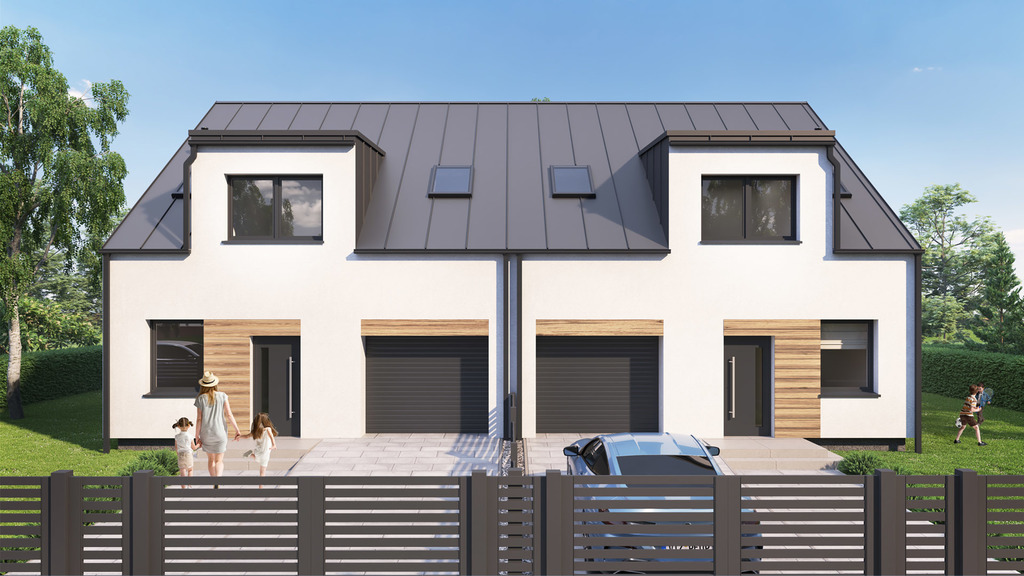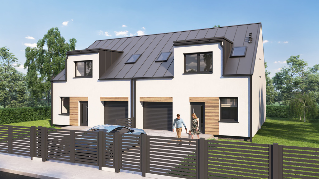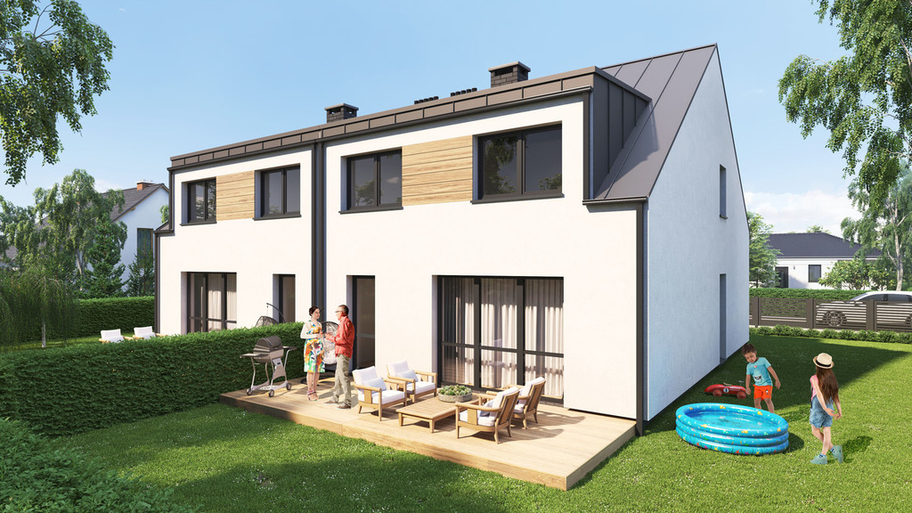 - Podwójna ściana 24 + 24 z izolacją między domami zapewniająca ciszę i komfort użytkowania