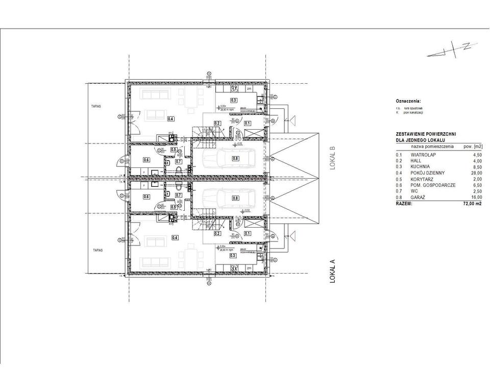 - Garaż w bryle budynku oraz miejsce postojowe.