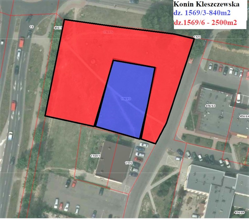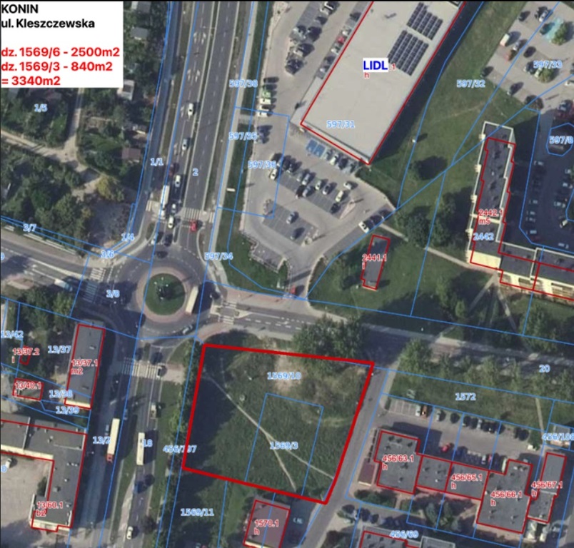 Na sprzedaż dwie działki o łącznej powierzchni 3340 m2 w bezpośrednim sąsiedztwie największego osiedla mieszkaniowego w Koninie przy ul. Kleczewskiej (przy drodze krajowej) Osiedle Zatorze i najnowszego Lidla.
