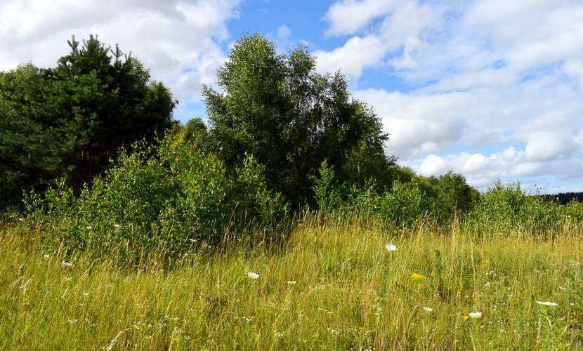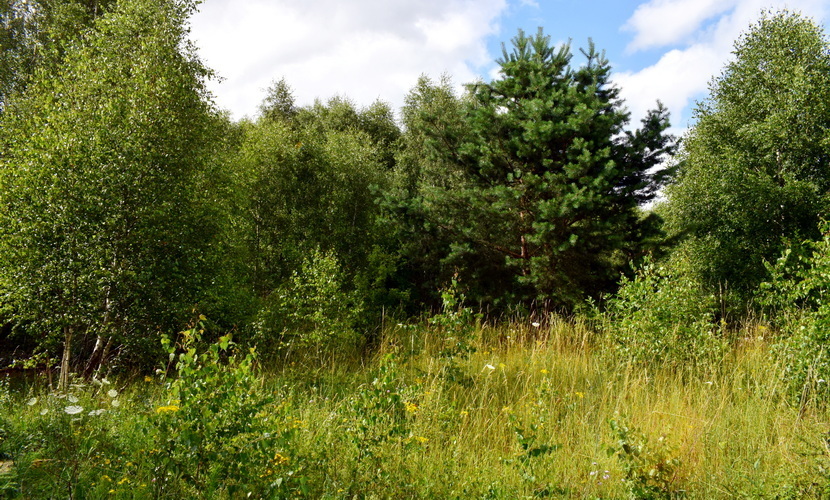 Teren działki lekko pochylony w kierunku północnym stanowi niekoszona łąka z nielicznymi, drobnymi samosiejkami.