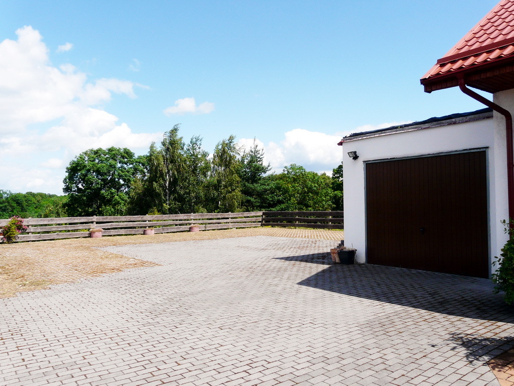 Obok pensjonatu garaż z tarasem na dachu oraz miejsca parkingowe na 10 samochodów