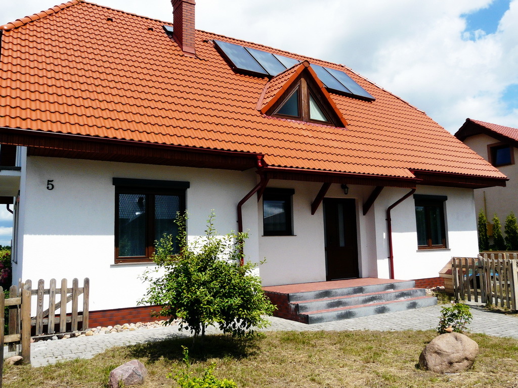 Dom jest budynkiem parterowym z poddaszem użytkowym, o ładnej atrakcyjnej bryle, wybudowanym z nowoczesnych i dobrych jakościowo materiałów. Ściany z bloczków Ytong, ocieplane styropianem (15 cm), dach dwuspadowy kryty dachówką ceramiczną, wewnątrz ekotynki, okna PCV 3-szybowe, okleinowane.