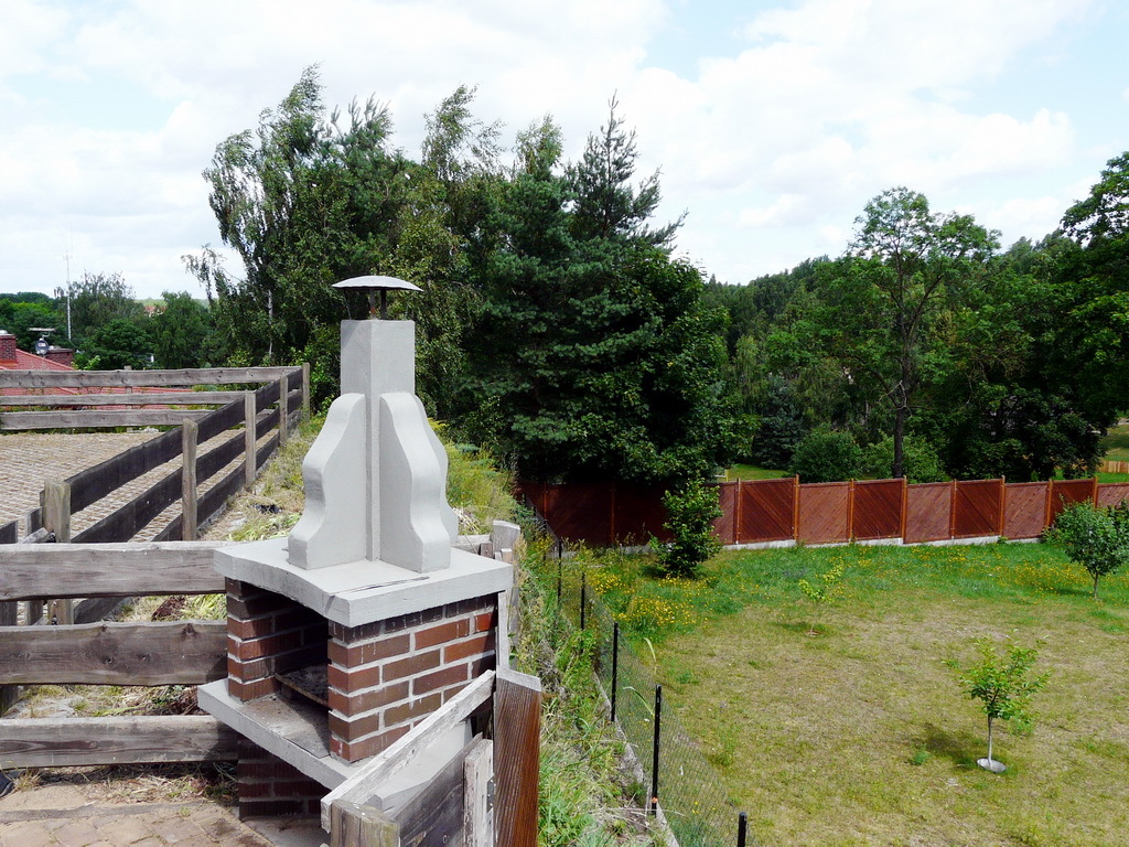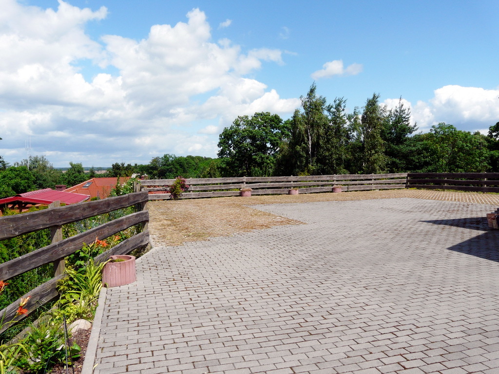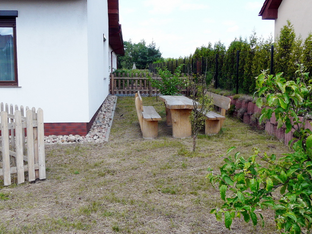 Działka o pow. 0,1761 ha i kształcie zbliżonym do prostokąta o szer. ok. 23 m i dł. ok. 78 m, ogrodzona, ładnie zagospodarowana i urządzona. Obok powierzchni utwardzonych kostką brukową, ładne tereny zielone z licznymi nasadzeniami, tworzące spokojne zakątki i miejsca do odpoczynku na świeżym powietrzu, w tym także kącik z murowanym grillem. Zarówno z działki jaki z tarasu nad garażem ładny widok na okolice i pobliskie jezioro.