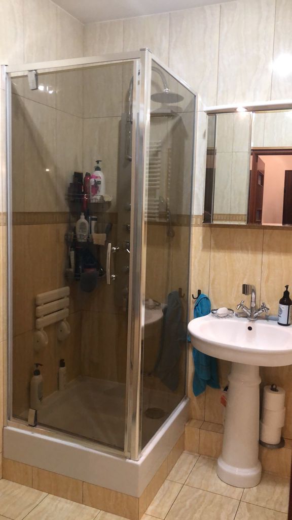 - przestronna łazienki z wc oraz kabiną prysznicową w glazurze i terakocie