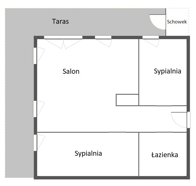 - przestronny salon z aneksem kuchennym oraz wyjściem na duży taras,