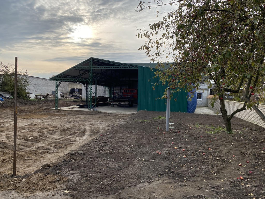 jest też wiata przeznaczona na magazynowanie, w której znajduje się tarcica nieobrzynana - dąb (również w cenie nieruchomości).
