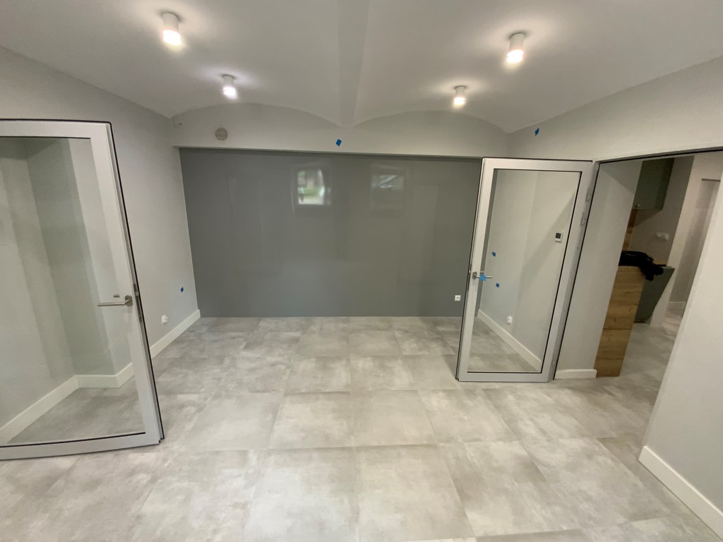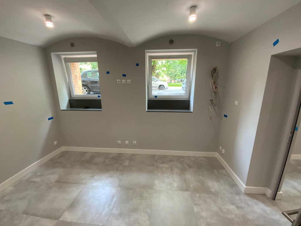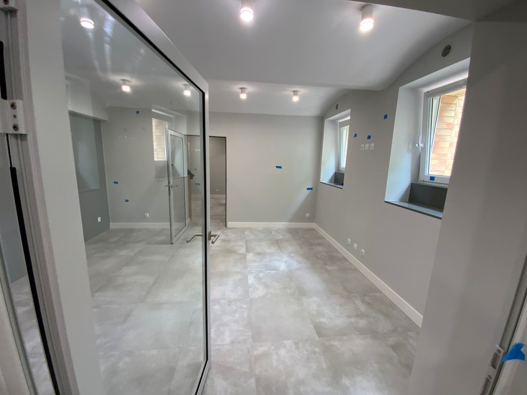 Całkowita powierzchnia lokalu to 55 m2, na którą składają się poczekalnia, biura, toaleta oraz pomieszczenie socjalne połączone z kuchnią.