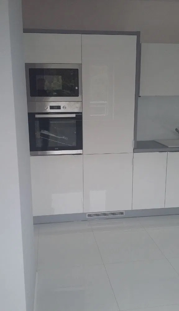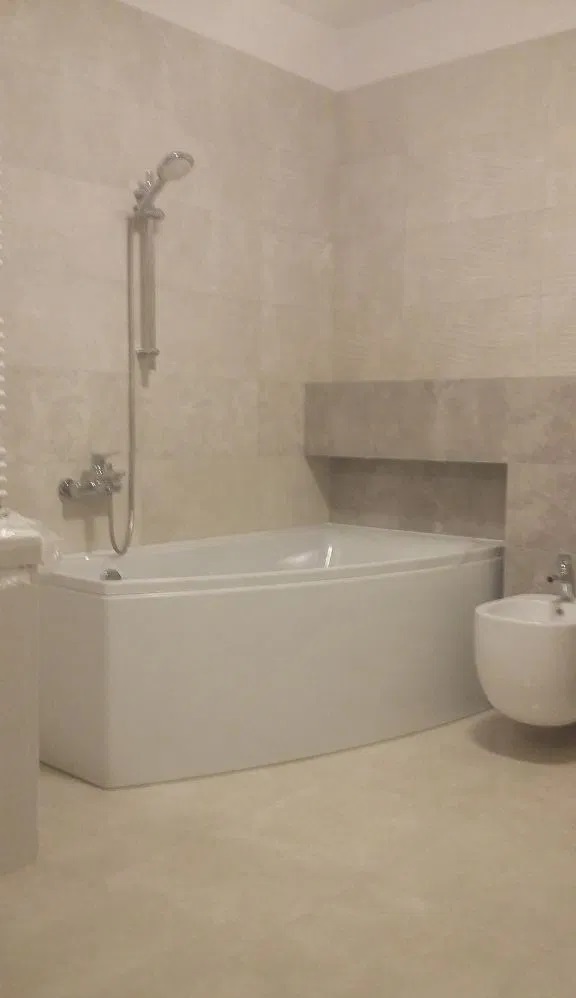 W części kuchennej, łazienkach, korytarzu położono gres szkliwiony.