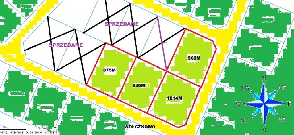 Do sprzedania kompleks działek w Wołczkowie zlokalizowane przy ulicy Ogrodowej. Dostępne wielkości: 875m, 886m, 963m, 1014m. Działki objęte MPZP który określa nam 25% zabudowy, dwie pełne kondygnacje 11m do kalenicy dachy dwu lub wielospadowe kąt nachylenia 30-45 stopni, biologicznie czynna 60% W drodze przy działce prąd, woda, kanalizacja, linia gazowa projektowana. Cena zawiera podatek VAT 23%. Zainteresowane osoby zapraszam do kontaktu z maklerem prowadzącym.