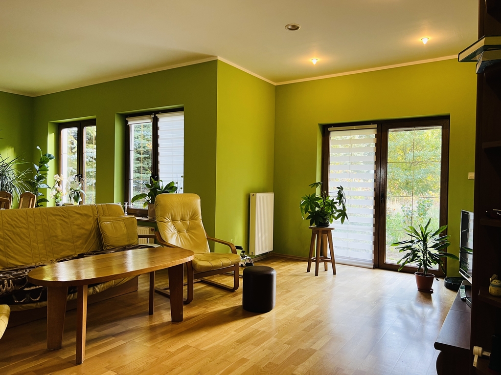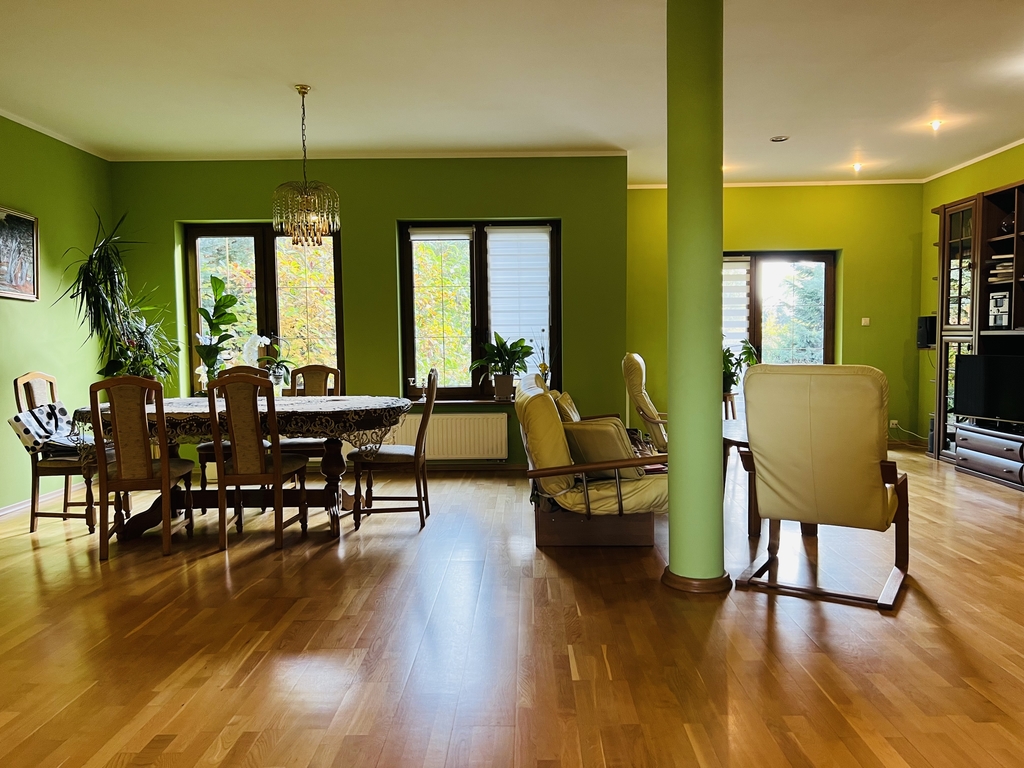 Nieruchomość posadowiona na dużej działce o powierzchni 1718 m2, w bliskiej odległości od jeziora Parlińskiego.