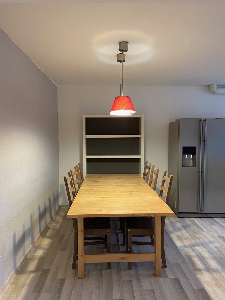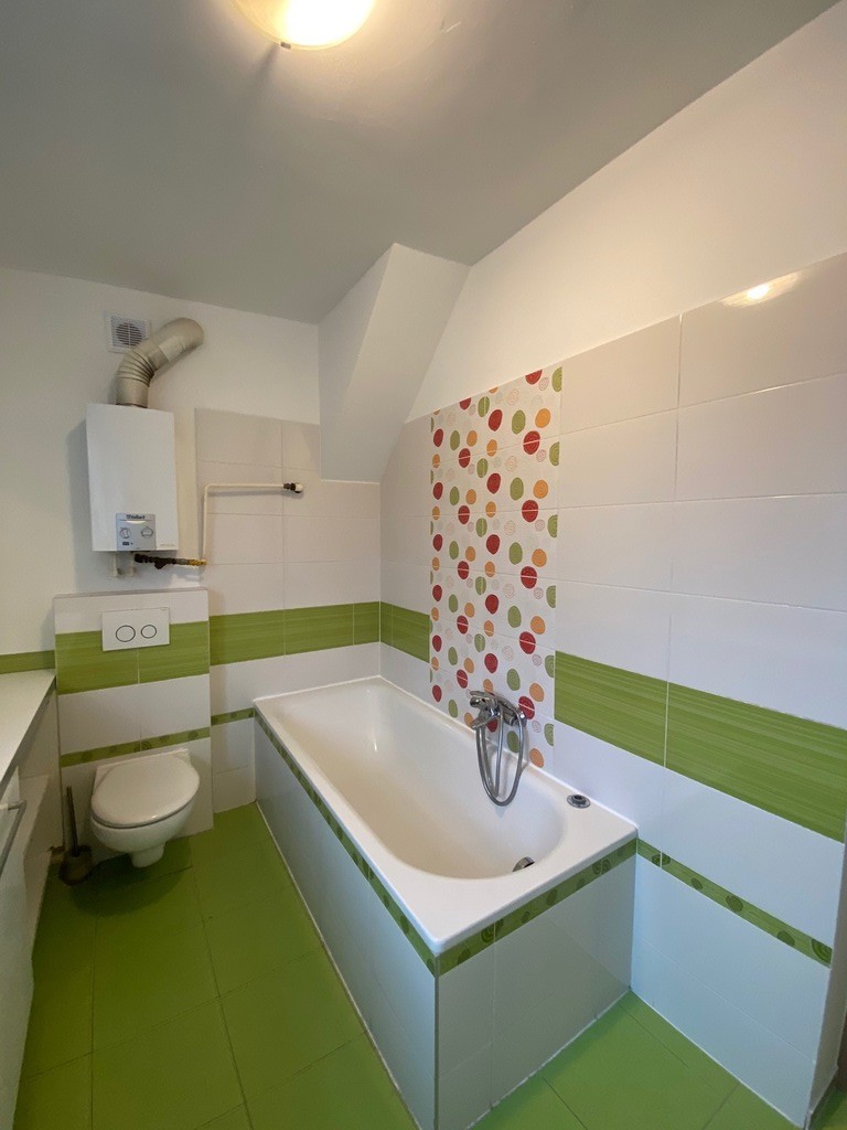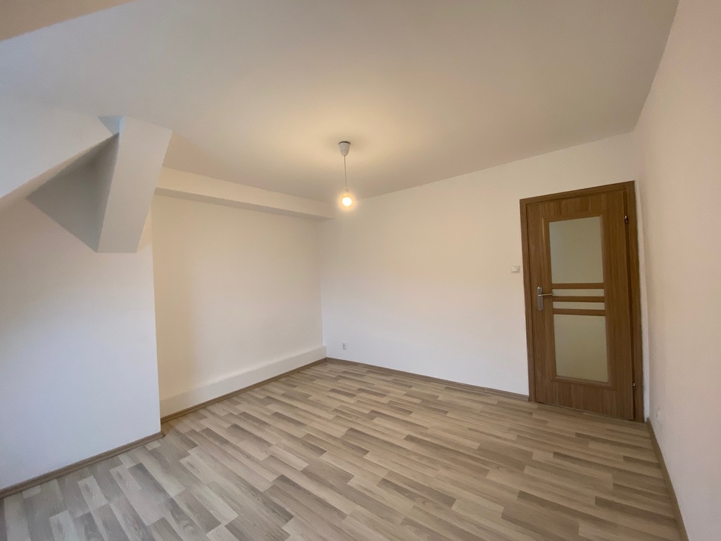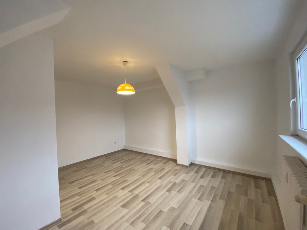 Na pierwszym piętrze znajduje się salon (pow. 23m2), kuchnia z jadalnią (pow.17m2), 2 pokoje (każdy o pow. 17m2), łazienka z wanną i WC (pow. 7m2), przedpokój. Na drugim piętrze jest strych do adaptacji o pow. ok. 50m2- łączna powierzchnia nieruchomości wynosi 130 m2.