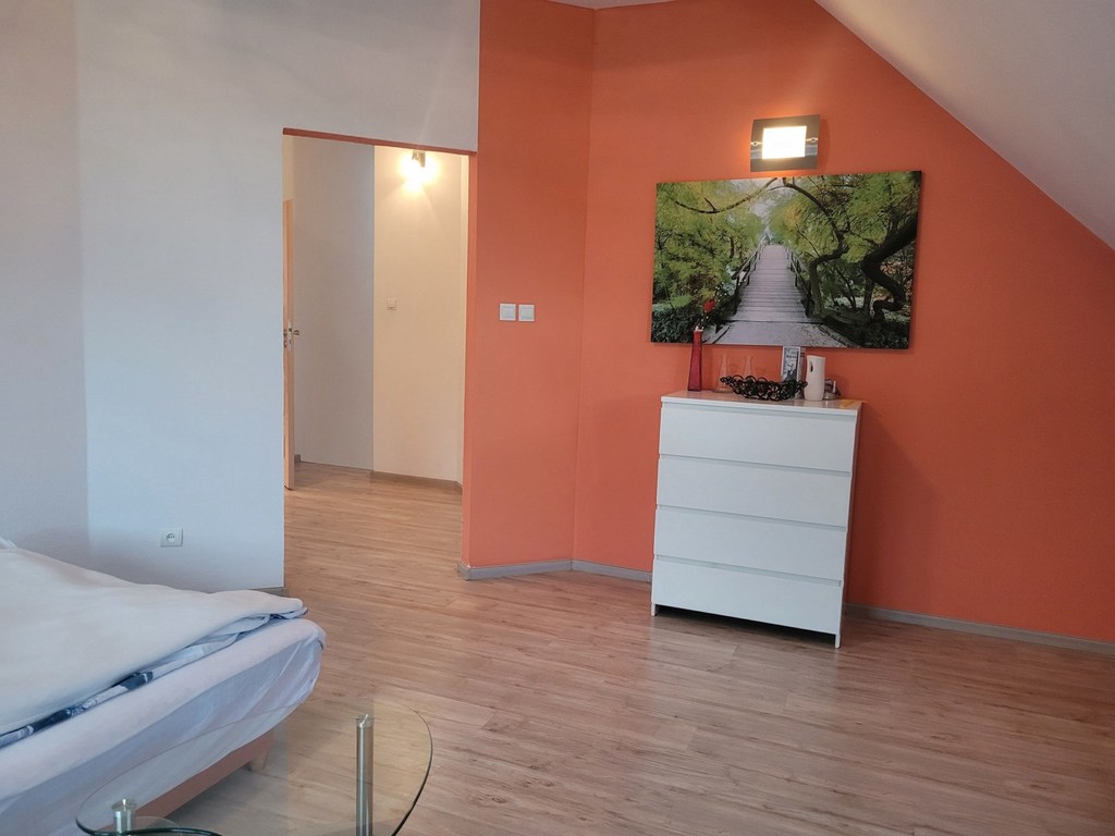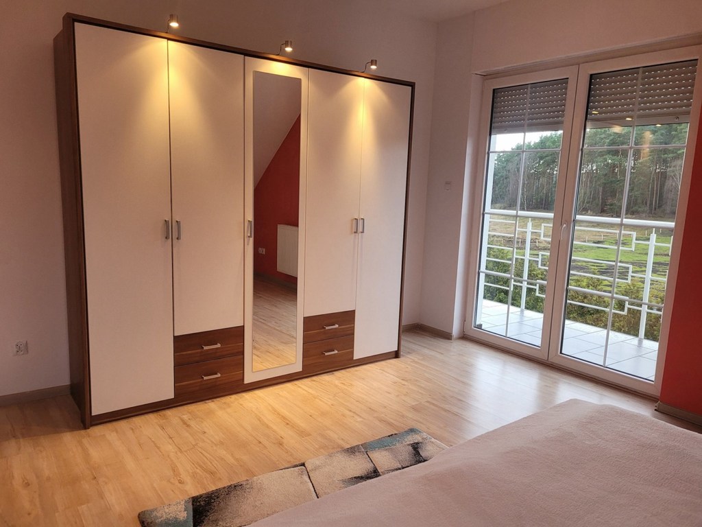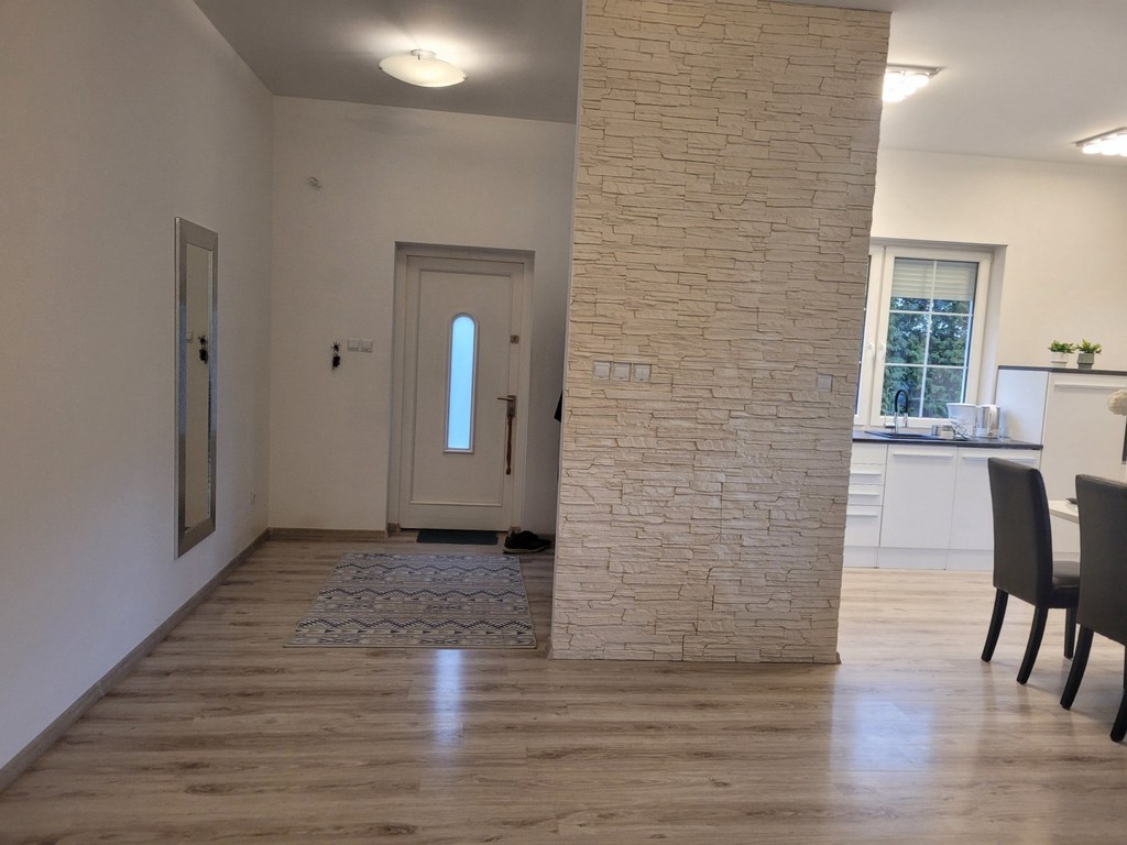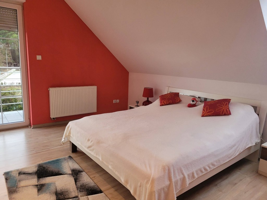 Pilchowo - nowa 1/2 bliźniaka zlokalizowanego w wyjątkowo urokliwym miejscu - wokół las ,łąki, cisza i obcowanie z przyrodą. Dom wybudowany z cegły, ocieplony styropianem 12 cm, jasna elewacja, dach z lukarnami pokryty dachówką Brass. Dom jest nowy, ma odbiór budowlany z listopada 2021 roku. Garaż 16 m2 w bryle budynku. Dom nie jest podpiwniczony, ale posiada strych o powierzchni 35 m2 do dowolnej aranżacji. Dom ma 2 kondygnacje po 100 m2 po podłodze na każdej z kondygnacji. Parter domu to duży salon o powierzchni około 70 m2 otwarty na widną kuchnię i z wyjściem na taras. Kuchnia z nowymi meblami kuchennymi i sprzętem AGD /płyta grzewcza elektryczna, piekarnik elektryczny, zmywarka/. Podłoga pokryta panelami, cały parter ma ogrzewanie podłogowe, na piętrze grzejniki. W łazience na parterze zamontowano piec gazowy dwufunkcyjny. Schody na piętro wylewane. Na piętrze 3 duże sypialnie z niewielkimi skosami o powierzchni 26, 26 i 28 m2. Największa sypialnia z balkonem. Łazienka z niewielkim skosem o po. 10 m2 z dużą kabiną, wc i umywalką /miejsce na montaż wanny/. Łazienka wykończona glazurą i terakotą. Woda gminna, kanalizacja miejska. Nieruchomość ogrodzona, działka zagospodarowana obsadzona tujami stanowi cichy urokliwy zakątek. Idealne miejsce do zamieszkania i wypoczynku. Polecam.