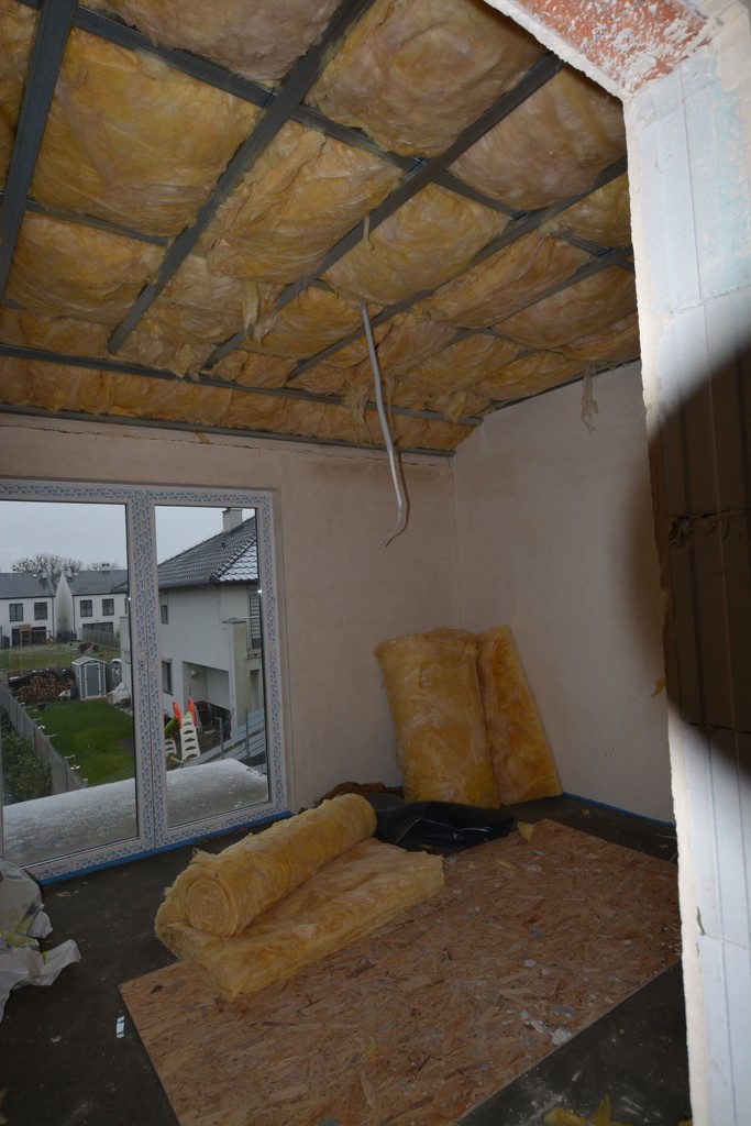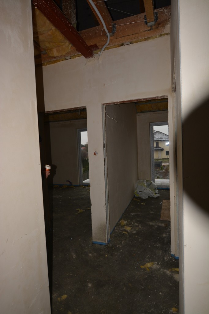 Dom z dużymi przeszkleniami, okna 3 szybowe, wykonany w technologi tradycyjne z Silikatów. Dachówka ceramiczna - dach wielospadowy. Ocieplenie styropian 20 cm. Na poziomie sypialni góra ocieplona wełną mineralną 30 cm. Tynki na ścianach gipsowe.