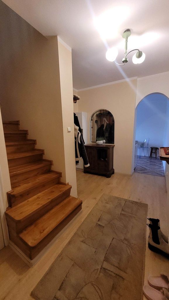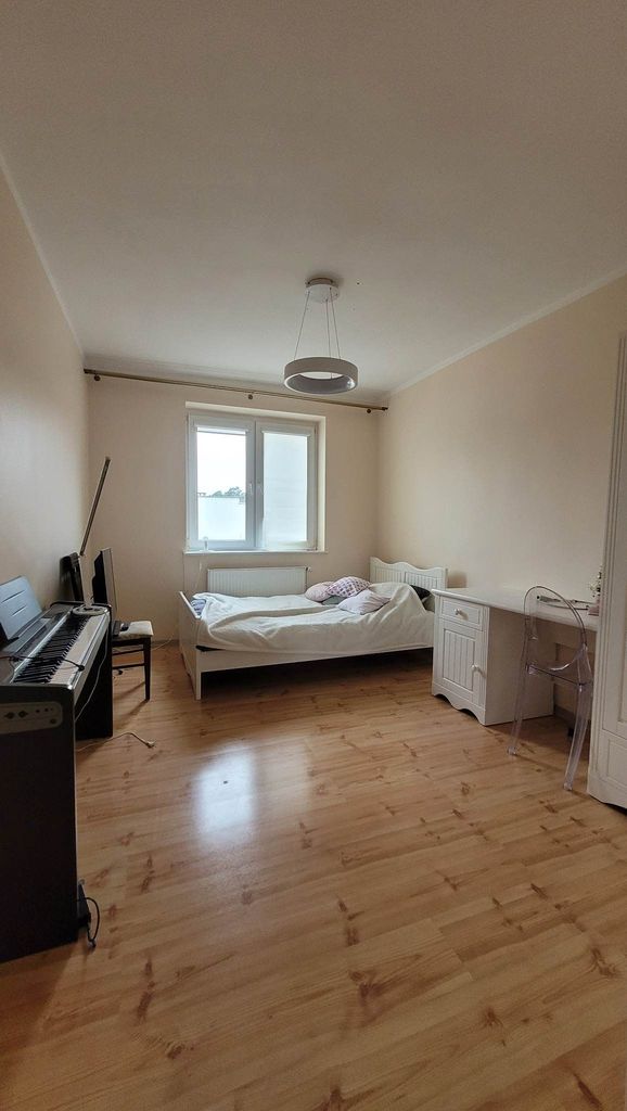 I piętro : 3 sypialnie w każdej na podłodze panele ściany wygładzone i pomalowane oraz przestronna łazienka z oknem (łazienka w glazurze i terakocie z wanną.