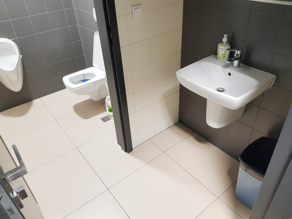 Pomieszczenia socjalne – na podłogach wysokiej jakości kafle, fartuch z kafli na ścianach.