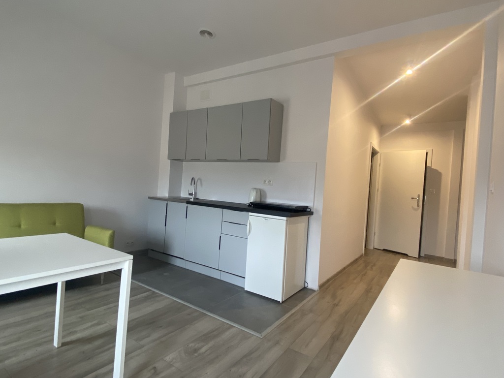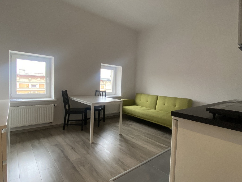 Na wynajem funkcjonalna kawalerka z dużą garderobą pełniącą funkcję sypialni (bez okna).