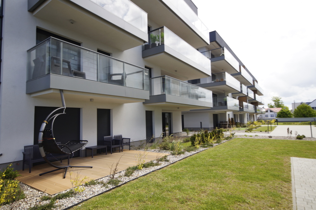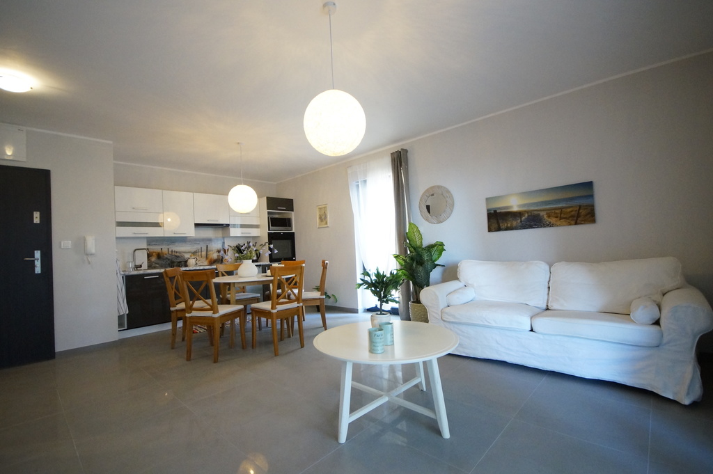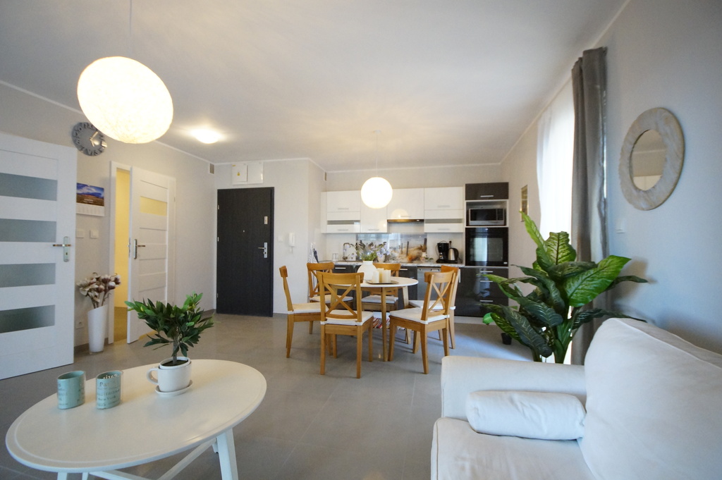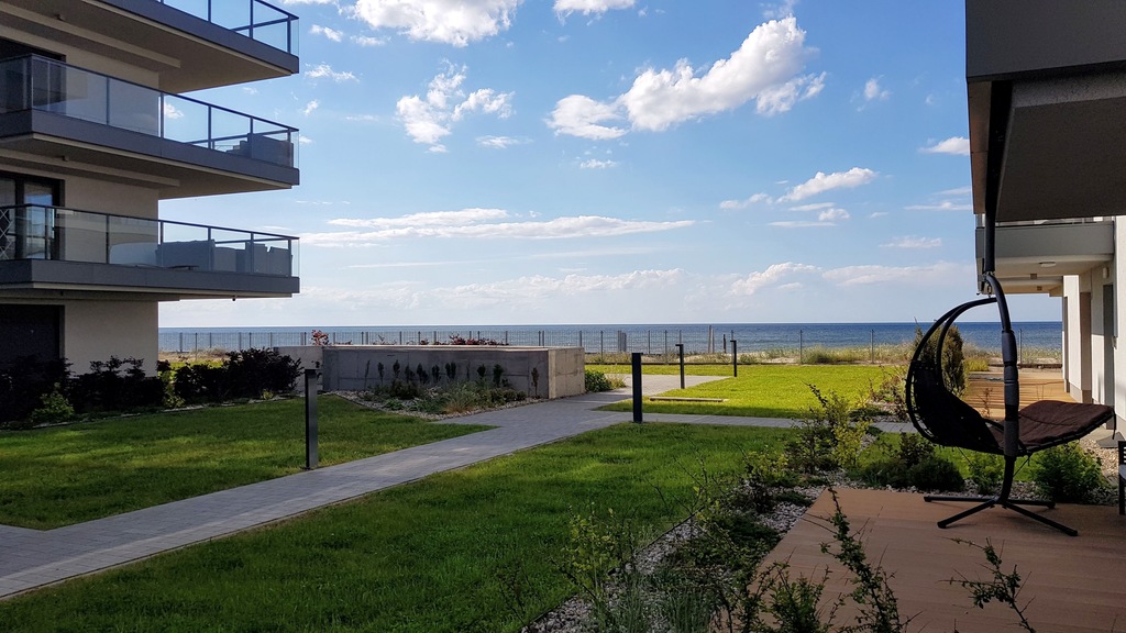 Sprzedam apartament o pow. użytkowej ok.45. Apartament usytuowany jest w nowoczesnym, komfortowym apartamentowcu z 2019r z windą zjeżdżającą do poziomu garażu w pierwszej linii zabudowy od morza). Kompleks budynków jest dostępny jedynie dla mieszkańców, ogrodzony i stale monitorowany. Do dyspozycji mieszkańców jest plac zabaw dla dzieci, tereny zielone. Apartament składa się: z eleganckiego salonu, sypialni, aneksu kuchennego oraz łazienki. Apartament znajduje się na parterze budynku, posiada ogródek o powierzchni 27,82m2 z widokiem na morze oraz miejsce postojowe w hali garażowej w podziemiach budynku w cenie 80000 zl