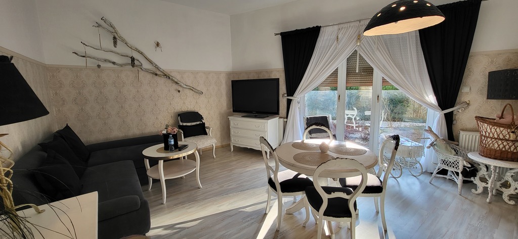 - duży, słoneczny salon wraz z aneksem kuchennym, z wyjściem na ogródek,