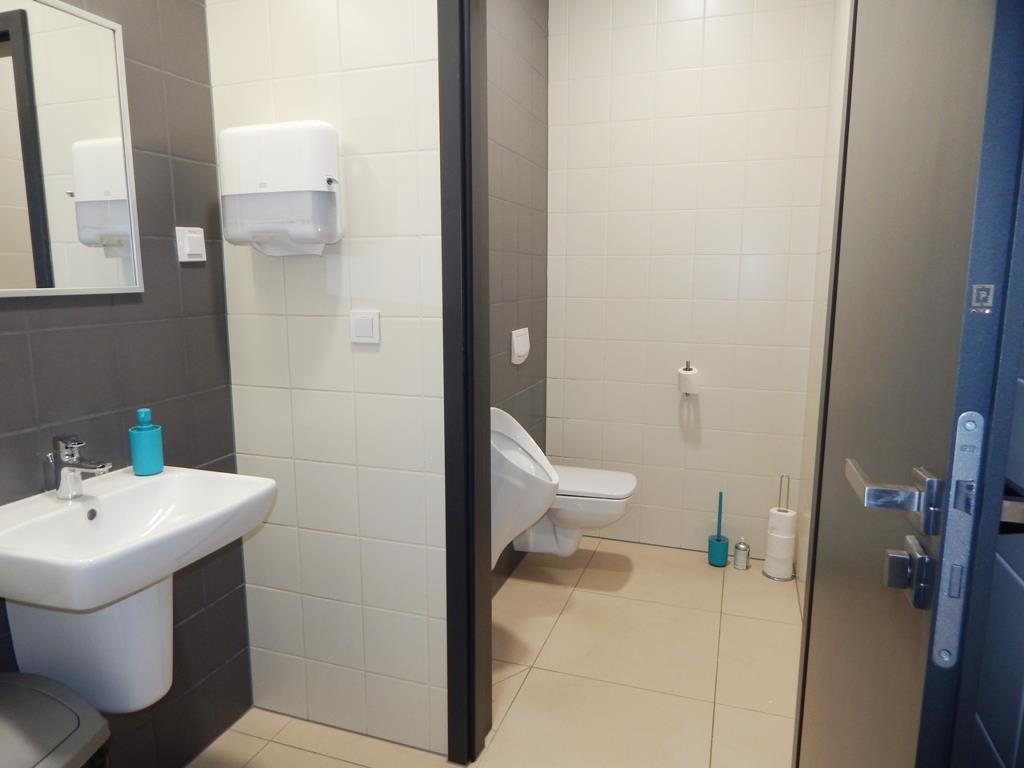 Pomieszczenia socjalne – na podłogach wysokiej jakości kafle, fartuch z kafli na ścianach.