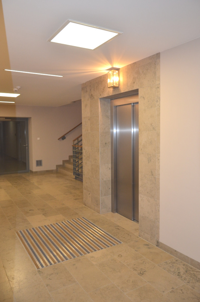 W budynku cichobieżna winda, dwa wejścia: od frontu i od dziedzińca z zagospodarowaną zielenią.