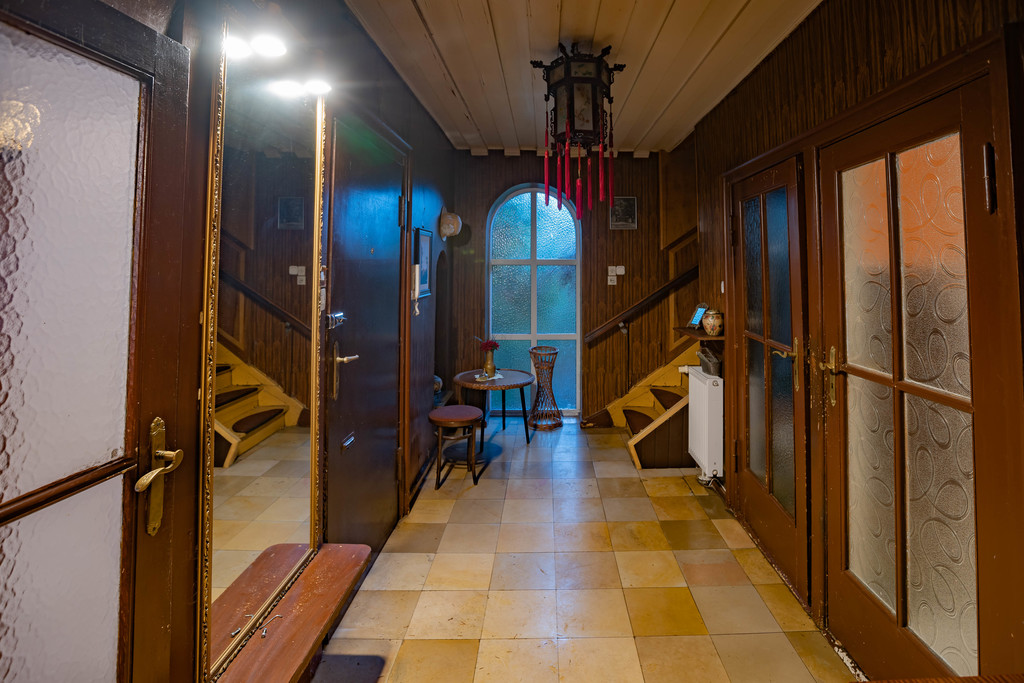 W domu zachowanych jest dużo elementów przedwojennych, w latach 90-tych wykonany był remont dachu i wymiana okien na nowe PCV. Dom do remontu, na ścianach tapety, podłogi deski drewniane, w salonie i bibliotece sufity drewniane, łazienki i kuchnia kafle.