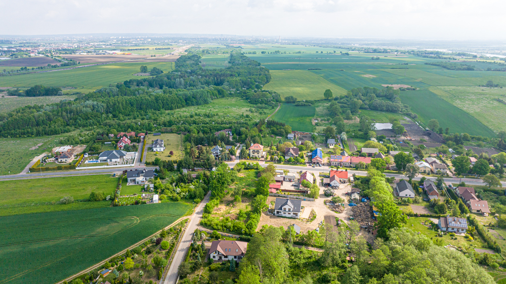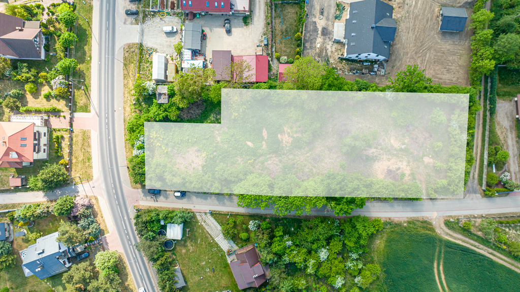 Działka położona przy głównej ulicy wśród zabudowy jednorodzinnej. Teren płaski o powierzchni 3443 m2.