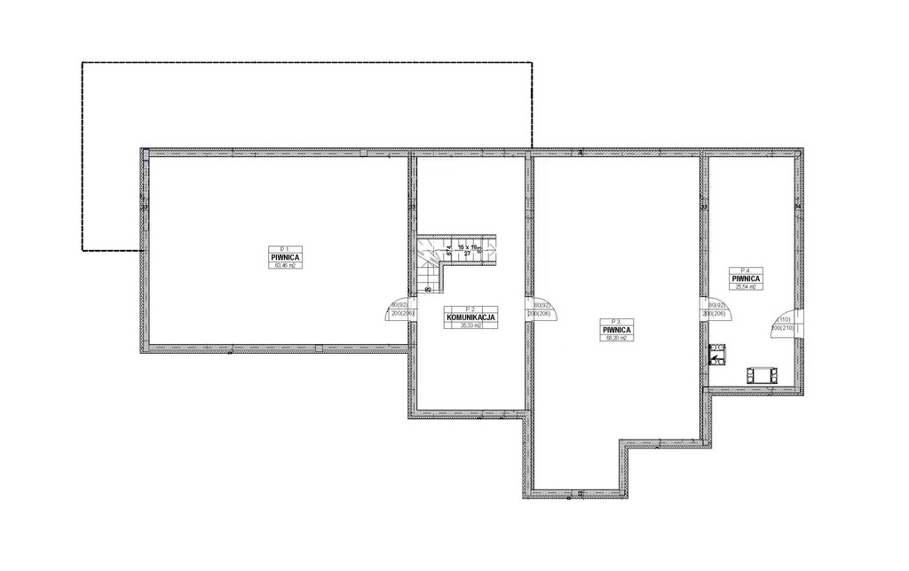 Cały dom jest podpiwniczony. W skład piwnicy (ogrzewanie podłogowe na całej powierzchni), która jest jeszcze nie wykończona, a daje duże możliwości aranżacyjne wschodzi :