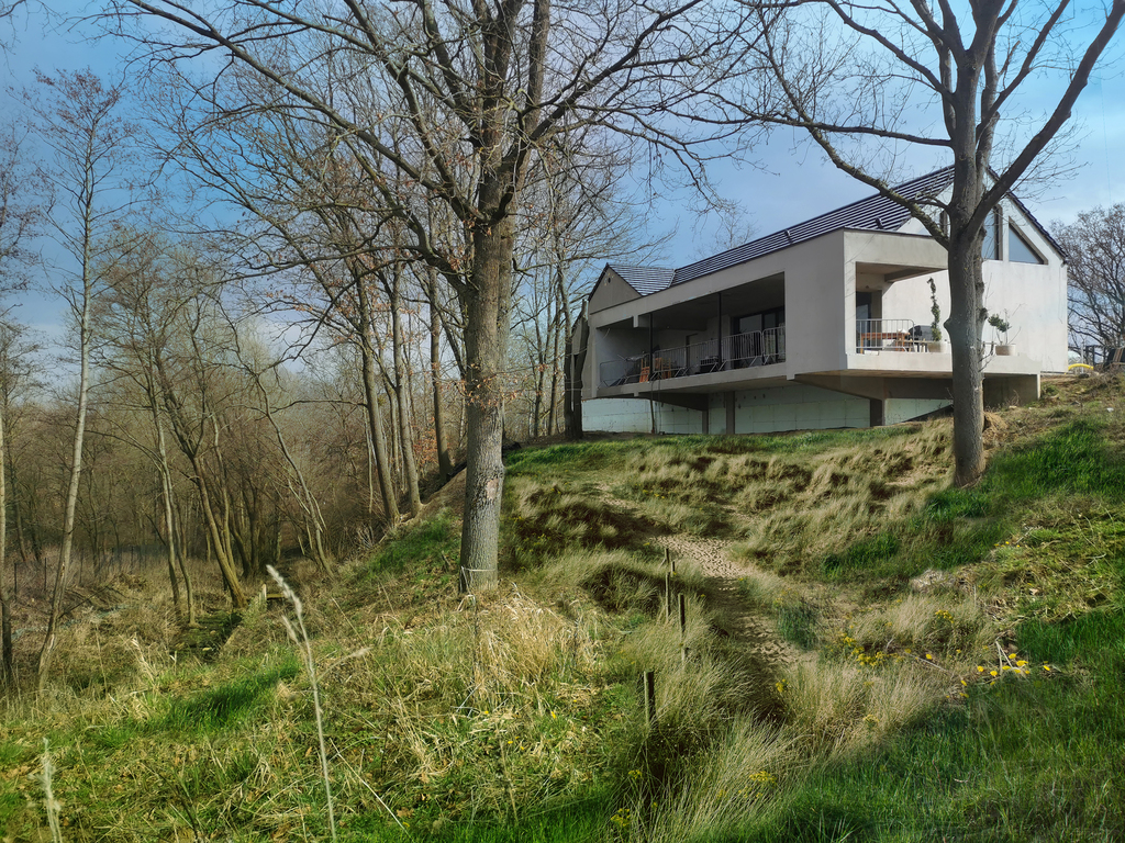 Wokół domu znajduje się prywatny las , gdzie można cieszyć się dużym spokojem i wyjątkowym widokiem , ponieważ położony jest na wzniesieniu.