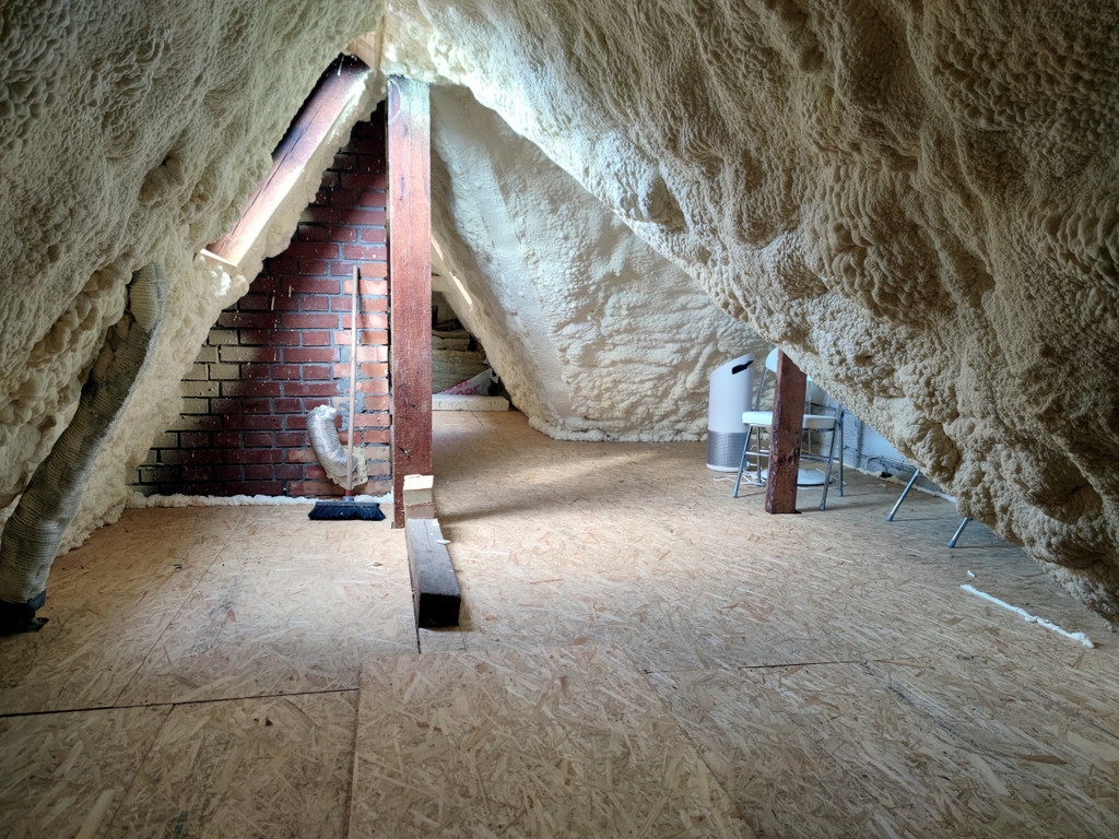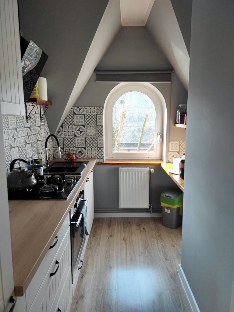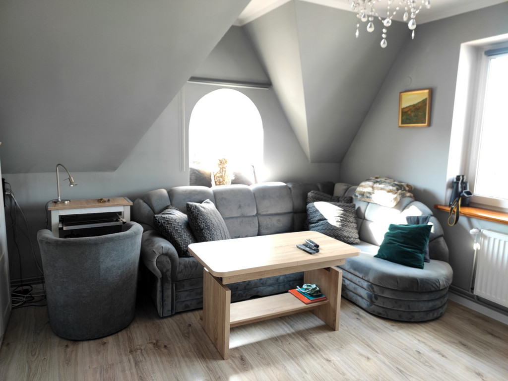 Nad mieszkaniem dodatkowo znajduje się stryszek ocieplony pianką PUR.