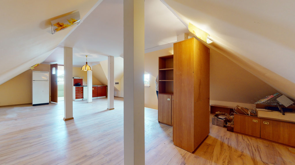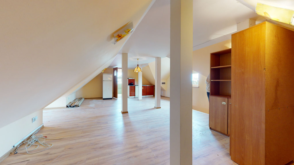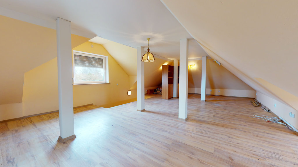- otwartą powierzchnię (ok. 60m2 po podłodze), która może być wykorzystana jako np. zaplecze biurowe czy nawet mieszkanie w formie kawalerki