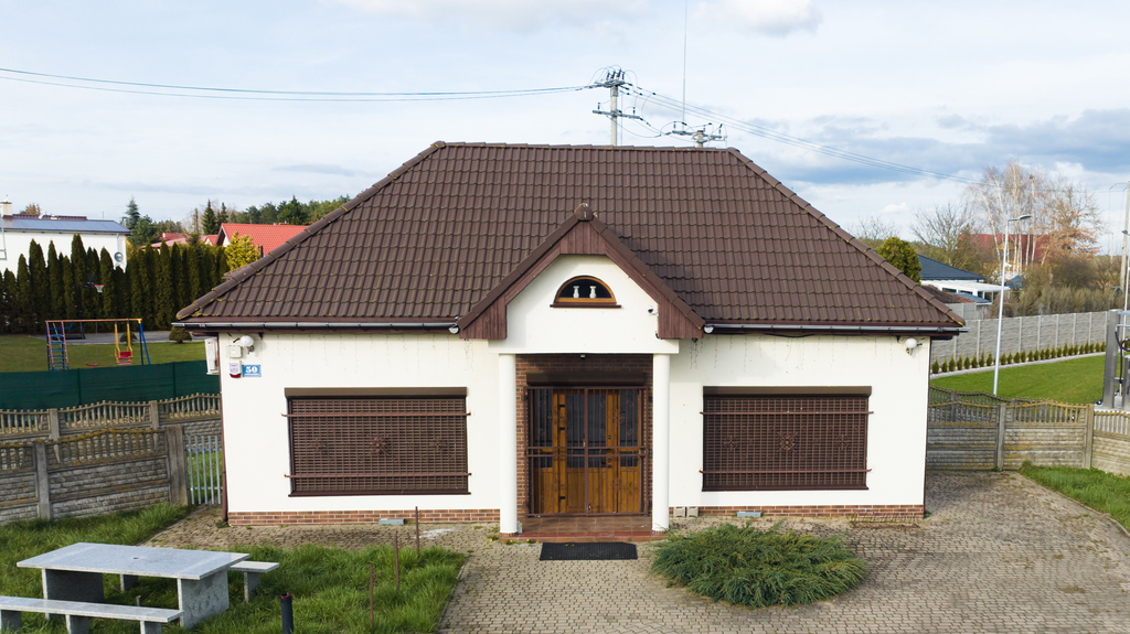 Budynek wybudowany w 2011 roku z bloczków silikatowych, ocieplony, dach pokryty dachówką.