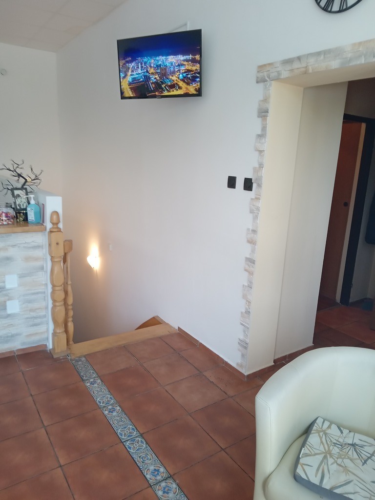 W lokalu ściany malowane, gładzone, na posadzce terakota.