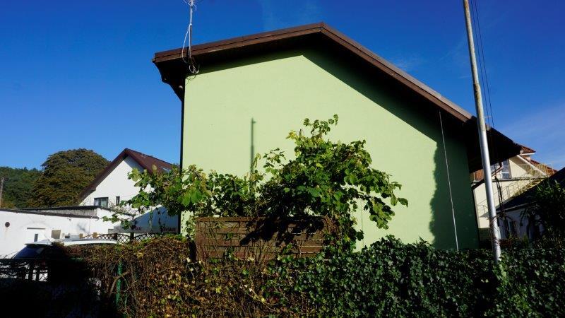Dom murowany, dach pokryty gontem, woda, prąd, kanalizacja miejska.