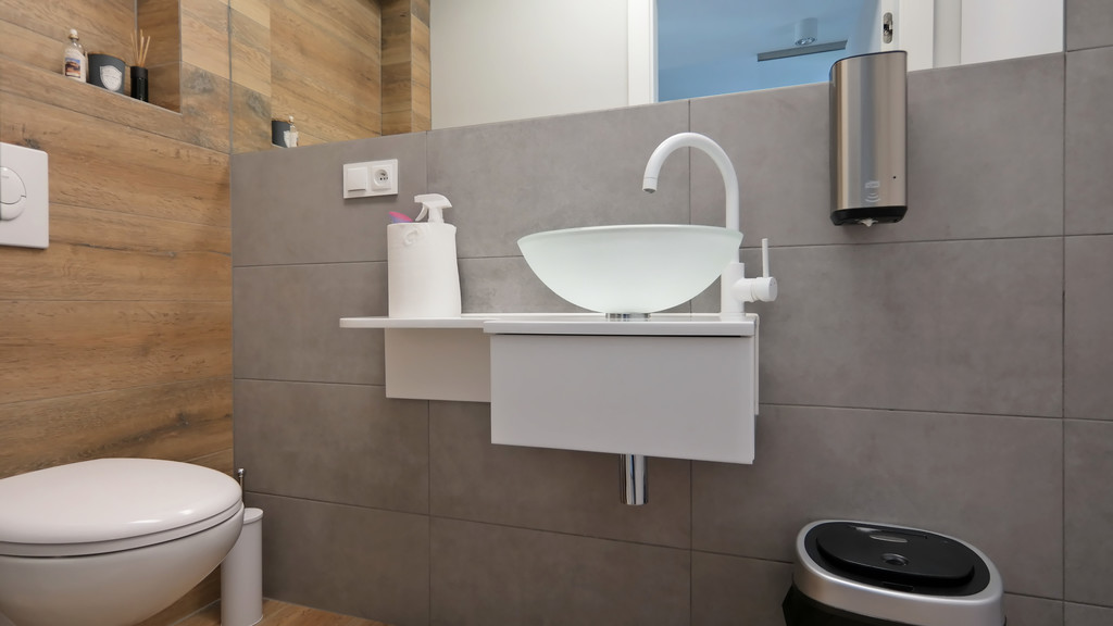 W pomieszczeniu open space na podłodze znajduje się wykładzina wysokiej jakości, pod spodem położono panele wysokiej klasy ścieralności. Dodatkowo znajduje się wyjście na ogródek. Łazienka połączona z toaletą wykończona gresem wysokiej jakości.