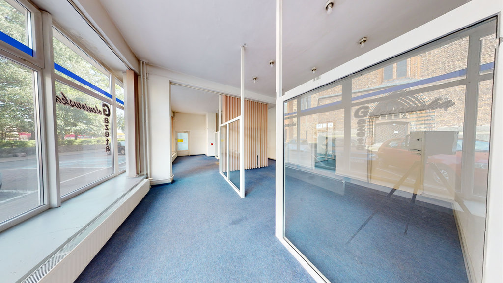 Sala sprzedaży o powierzchni 61,45 m2 to przestronna przestrzeń otwarta, idealna do prezentacji produktów lub usług.