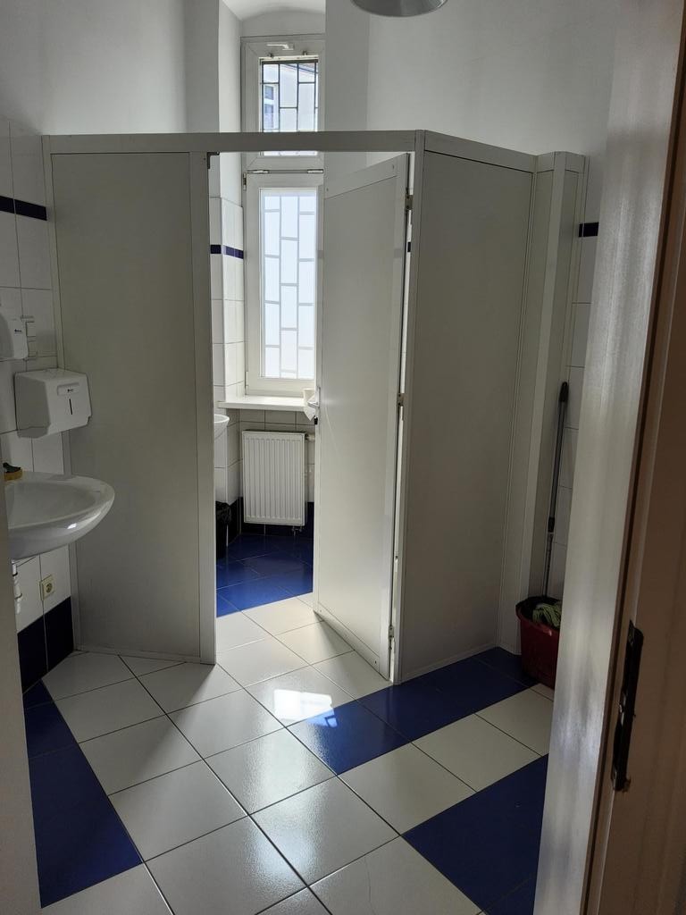 Pokoje są jasne i przestronne o pow. ok. 25, 25, 22,22,14m2, wc i części socjalnej. Wysokość 3,41m.