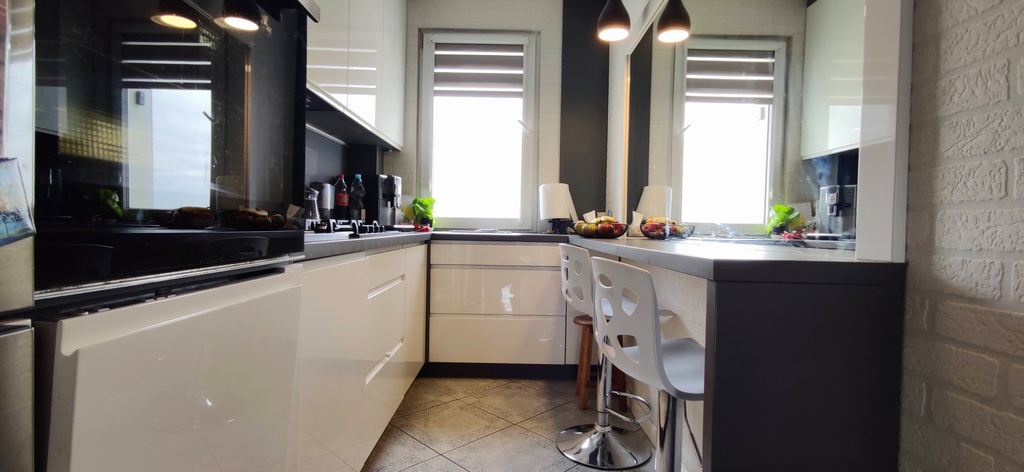 Meble kuchenne pod zabudowę, lodówka, piekarnik elektryczny, płyta grzewcza gazowa, zmywarka. W pozostałych pomieszczeniach, częściowe meble pod zabudowę, częściowo wolnostojące.