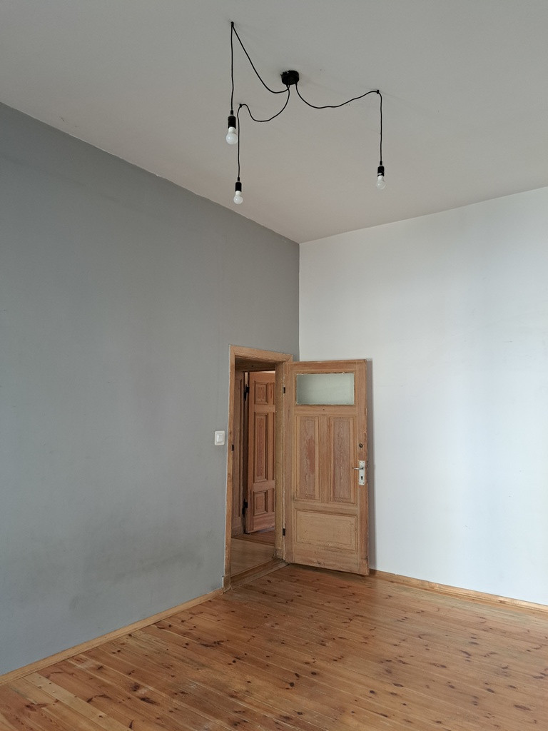 W mieszkanie częściowo zachowane zostały klimatyczne elementy pierwotnego wystroju takie jak stolarka drzwiowa oraz drewniane podłogi w pokojach.