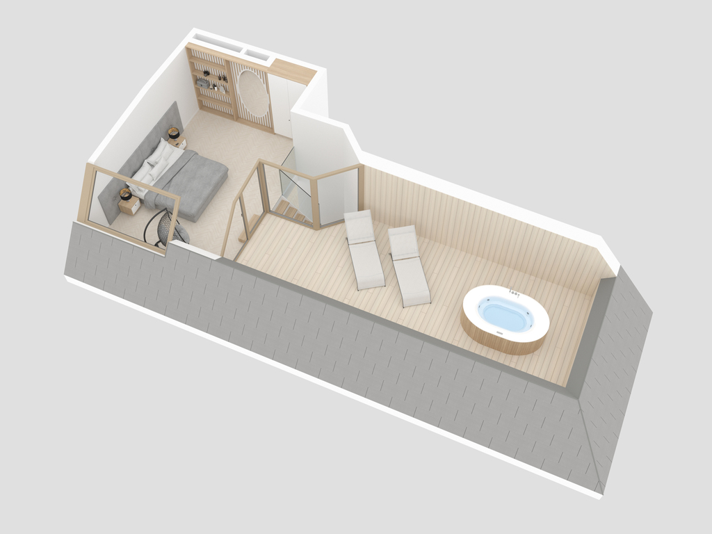 - loggia z miejscem na jacuzzi o pow. 25,15 m2.