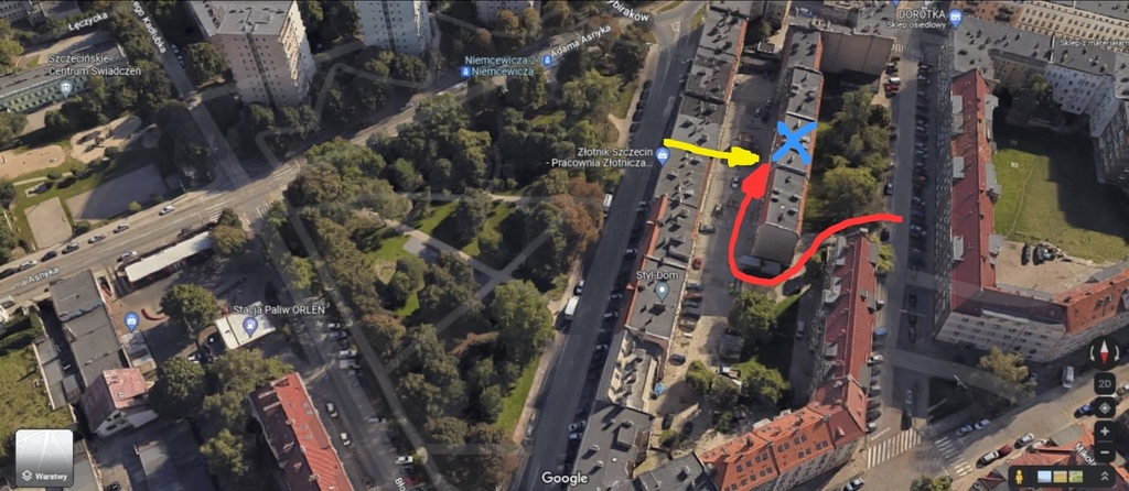 * wejście zarówno od Kołłątaja przez bramę główną, jak i od strony Długosza gdzie znajduje się wjazd dla samochodów na bardzo duży dziedziniec z dodatkowymi miejscami postojowymi (patrz zdjęcie); w okolicy liczne ogólnodostępne miejsca parkingowe;